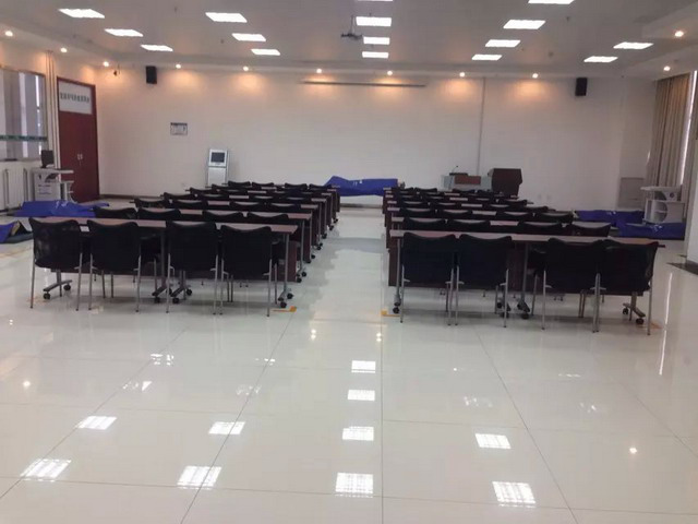 紧急救护技能室位于泰山学区电网应急与安全培训楼204室,是提高学员现场紧急救护技能为目的而开设的室内培训场地,面积为200㎡。该技能室内培训设施齐全,功能完善,主要设备包括高级心肺复苏模拟人、全功能创伤模拟人、自动体外除颤仪(AED)、各种触电急救工具、脊椎固定转移板以及多种类型制式担架等,可同时对60人进行现场观摩培训,且室内留有一定的学员练习空间,另配备了多媒体开放式辅助教学系统,可实现理论、操作一体化教学。紧急救护技能室通过触电现场急救、心肺复苏、创伤包扎、伤员搬运等培训科目的开展,可增强学员面对突发事故和伤害而进行及时有效救助和现场处理的能力,进一步提高学员的自救互救意识和综合紧急救护技能。