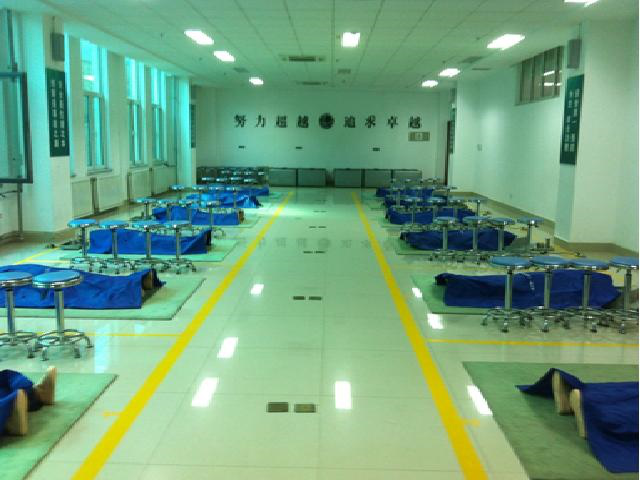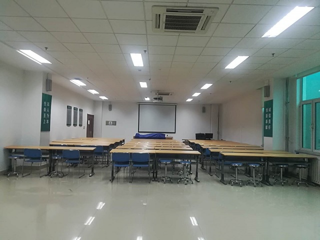 安全基本技能实训室(一)位于学院济南校区培训楼104室,设置有教学演示区和学员训练区,学员训练区共有十个操作训练工位,能够同时满足六十名学员实训。通过多媒体手段、现场演示以及实际操作进行心肺复苏项目的实训,以增强学员的安全防护意识和安全基本技能,提升电力安全生产水平。