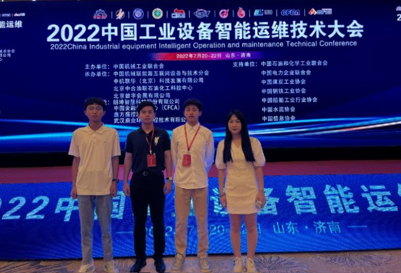 2022年7月21日-22日,我校计量工程系创新创业学生团队代表受邀前往济南参加“2022中国工业设备智能运维技术大会”。会议由中国机械工业联合会主办,中国电力企业联合会、中国石油和化学工业联合会等支持,是一次国内高水平的智能运维技术交流与展示大会。我系教师范红真带领学生齐宜泽、朱征宇、李淑婷和武舒畅参加会议。